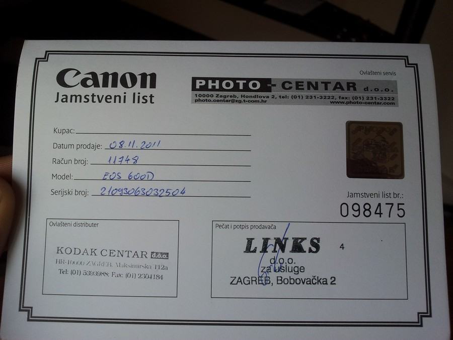 aparat kupljen u 11mj. prosle godine (garancija jos traje), ispucano cca 7k okidanja