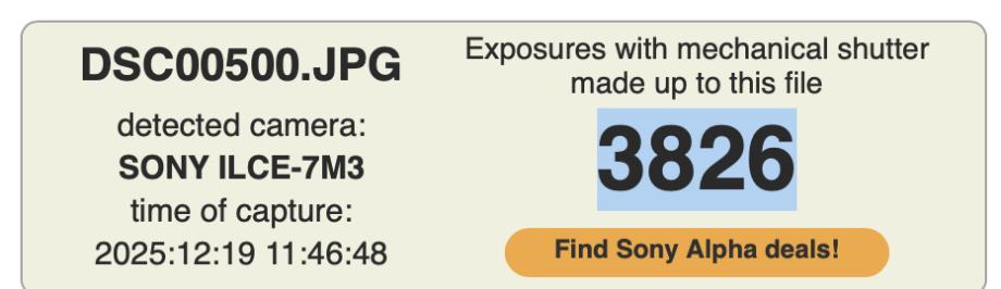 Fotoaparat ima samo 3.826 okidanja mehaničkog shuttera, što je izuzetno malo za ovaj model (provjereno i vidljivo u privitku).