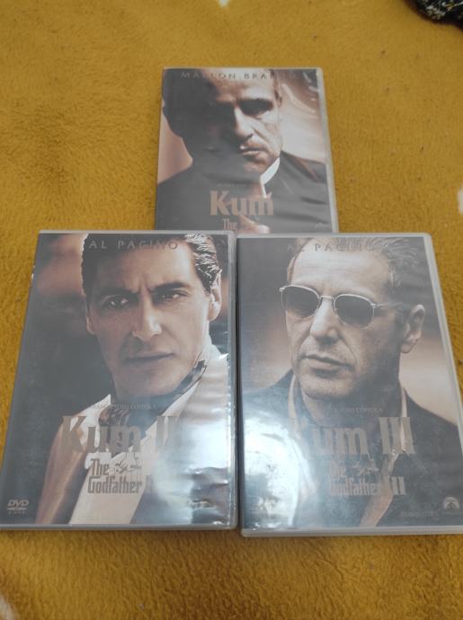 Filmovi su svi original,s prijevodom na hrvatski i dobro ocuvani jer su iz kucne kolekcije.Radi veceg broja dvd-a oglas je podijeljen u vise dijelova.Ako vas sto dodatno zanima,samo pitajte.Cijena dvd-a je 3, 4€,popust na kolicinu.Iznimka su trilogije Kum 1,2 i 3 i Oceanovih 11,12 i 13 kojima je cijena po 20€ za sva 3 dvd-a te Harry Potter kojem je cijena 7€ po dvd-u.