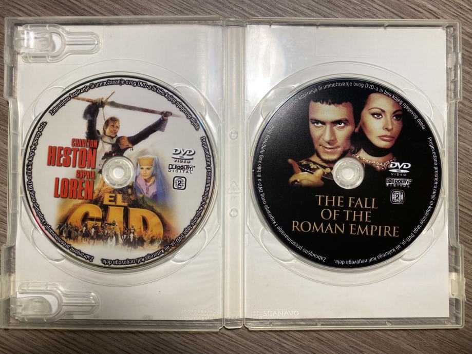 2x DVD-a s 2 filma: El Cid (1961.) + Pad Rimskog Carstva (1964.) Loren