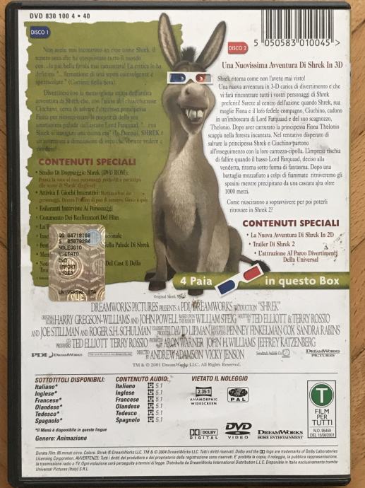 2x DVD-a: Shrek 3-D The Story Continues (15 min) + Shrek + spec.dodaci