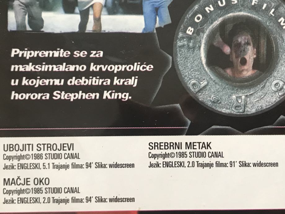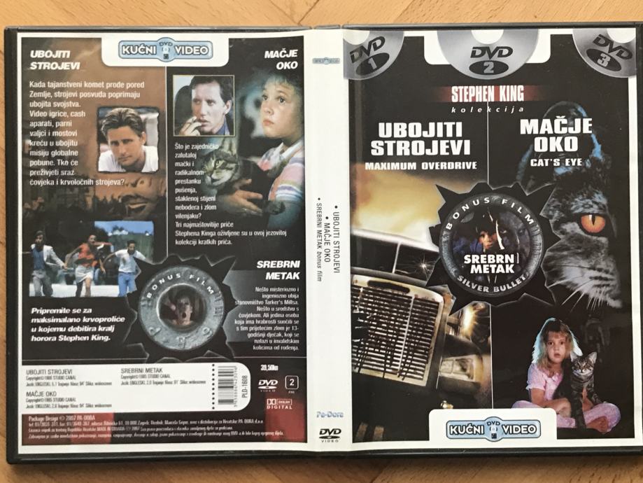 3x DVD Stephen King films:Ubojiti strojevi + Mačje oko + Srebrni metak
