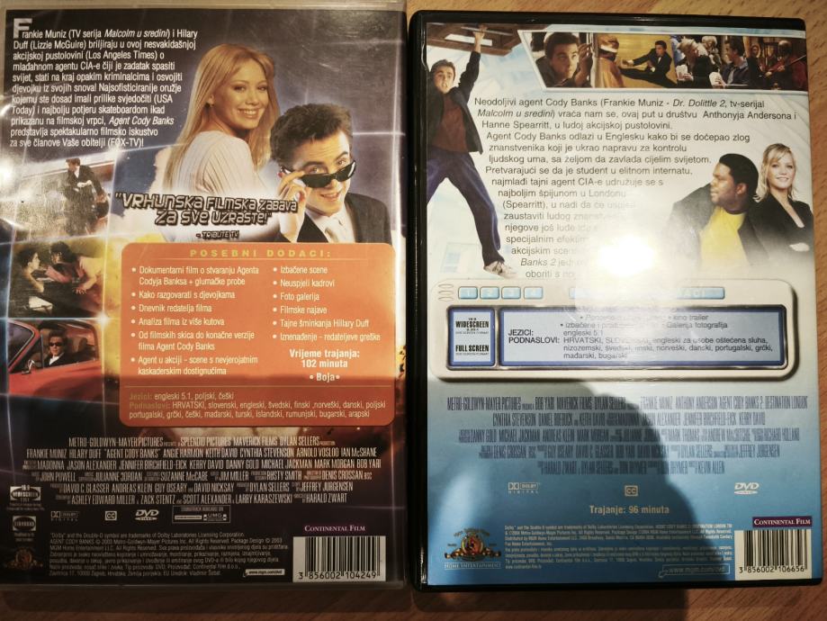 Prodajem original DVD filmove Agent Cody Banks 1 i 2 Prodajem u kompletu. Cijena 20 € plus poštarina. Preferiram slanje Tiskom. Upit preko Njuškala ili Viber i WhatsApp. Pogledajte i ostale moje oglase. Veća količina veći popust.
