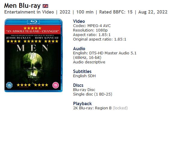 Alex Garland Blu Ray komplet (Ex Machina / Annihilation / Men)