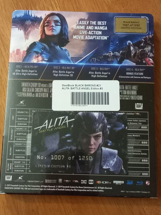 Alita Battle Angel 4K Steelbook Black Barons Film Arena Novo Zapakirano.