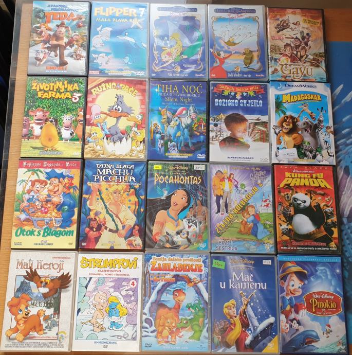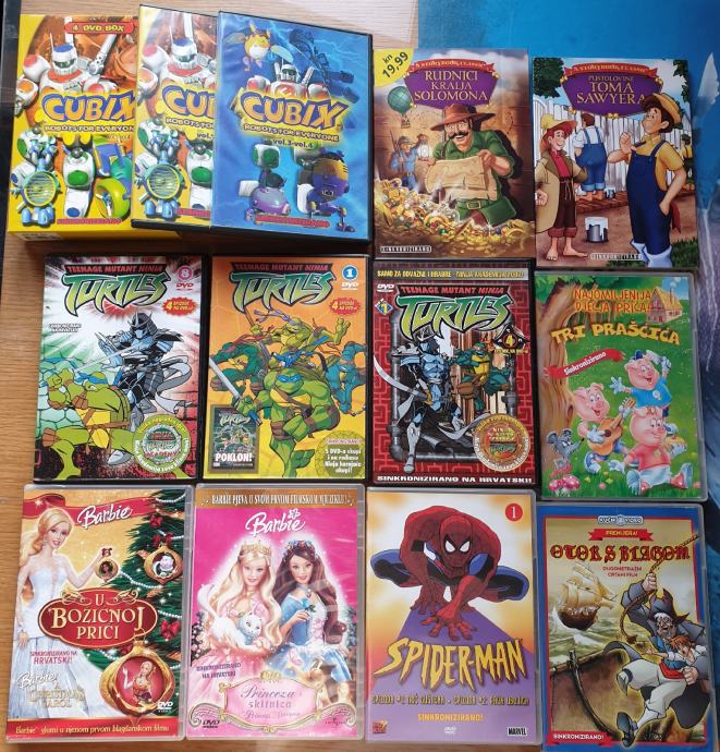 》PRODANO: Madagaskar 1, Spiderman, Barbie u Božičnoj priči, Najljepse bajke svijeta- pepeljuga i sinbad, Barbie princeza i skitnica, Tiha noc, Grimm 3x, Tom sawyer, Rudnici kralja solomona, Nemo, Madagaskar 1 i 2, Shrek 1,2,3, Pusti vodu da misevi odu, Open season 1, Arthur u zemlji minimoja 1, Dama i skitnica, Shrek 4 i Shrekov prvi Bozic, Auti, Bambi 1,2, Cudovista iz ormara, Legenda o medvjedu, Robinsoni, Štrumpfovi, Pinokio, Avanture neustrašivog Teda, Nindža kornjače/Teenage mutant ninja turtles 3 komada, Tri prašcica, Ružno pače, Zemlja daleke prošlosti Zahlađenje, Mač u kamenu, Kako izdresirati zmaja, Kung Fu Panda, Ironkid 8, Hans Christian Andersen (divlji labudovi, mala sirena), Najljepše bajke svijeta ( Put oko Svijeta za 80 dana, Bremenski svirači, Ljepotica i zvijer, Tri mušketira, Denver posljednji dinosaur, Sirena), Gusarska akademija, Princeza i grašak, Praščićeve priče, Brižni patak.
