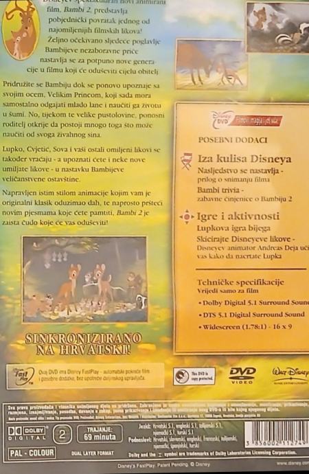 DVD.."BAMBI 2" .. PRVO HRVATSKO IZDANJE.. stari klasik nova avantura