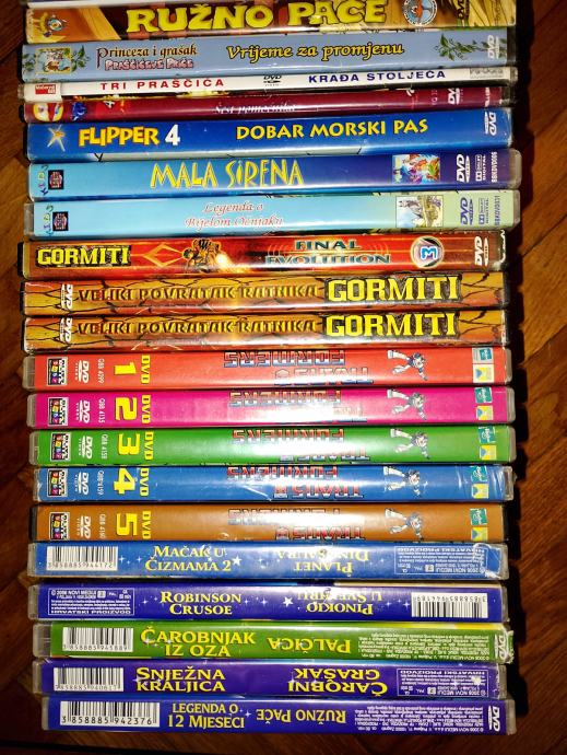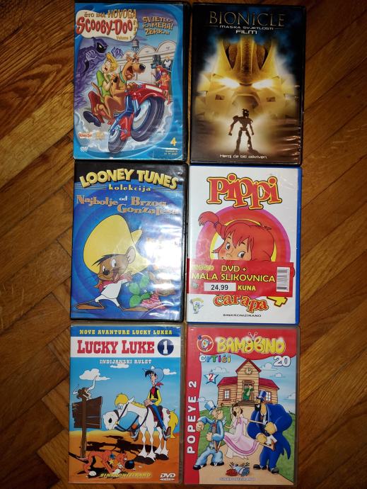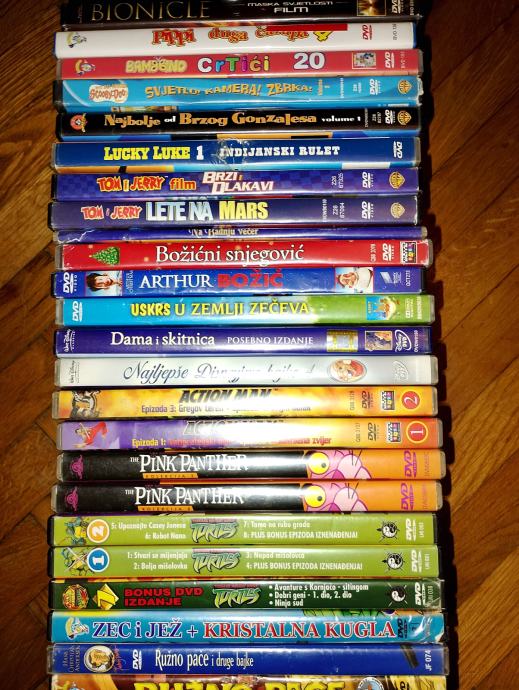 CRTANI FILMOVI SINKRONIZIRANI NA HR, DVD razni : slika 1 i 2 : - 5 DVD-a sa po 2 bajke na svakom DVD-u, 6 € svih 5 ili 10 bajki ; slika 3 : 9 DVD-a, na 1 dvije bajke, 10 bajki = 10 € ; slika 4 : GORMITI - 3 DVD-a = 3 € ; slika 5 : transformeri 1 - 5 = 6 € ; slika 6 : ninja kornjače dvd 1, 2 i 7 = 4 € ; slika 7 PINK PANTHER : kolekcija 2 i kolekcija 3 = 4 € ; slika 8 : BOŽIĆNO-USKRŠNJI CRTIĆI 4 KOM. = 5 € ; slika 9 : ACTION MAN 1 i 2 = 3 € ; slika 10 i 11 : dama i skitnica = 3 €, Disneyeve bajke = 2 €, oba 4 € ; slika 12 : TOM I jerry, 2 kom. 3 € slika 13 : bionicle, Pipi, POPAJ 2 ; scooby doo, brzi gonzales, LUCKY LUKE 1 , svaki 3 €, svih 6 = 10 € - sve u kompletu još i dodatni popust + 2 DVD-a gratis - Cars i spider - man na poklon tko uzme sve