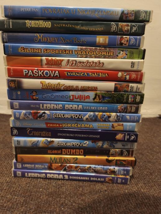 Prodajem kolekciju rabljenih DVD crtića koja uključuje popularne naslove poput Robin Hood, Mickey Mouse, Asterix, Gnomeo i Julija, Dumbo i mnoge druge. Svi DVD-ovi su u dobrom stanju i spremni za gledanje. Idealno za obitelji s djecom ili kolekcionare animiranih filmova. Cijena po komadu 10 €. Ako netko uzme sve cijena po komadu 5 €. Upit preko Njuškala ili Viber i WhatsApp. Pogledajte i ostale moje oglase. Veća količina veći popust.