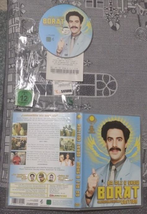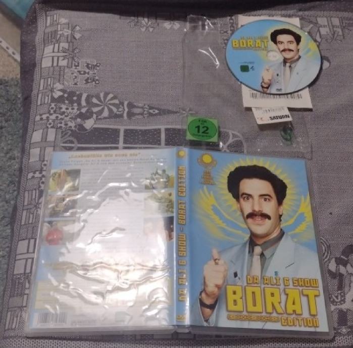 Prodajem rabljeni DVD film "Da Ali G Show Borat Edition" s audio zapisom na engleskom jeziku i njemačkim/engleskim titlovima. DVD je u dobrom stanju i sadrži posebno Borat izdanje popularnog humorističnog serijala.