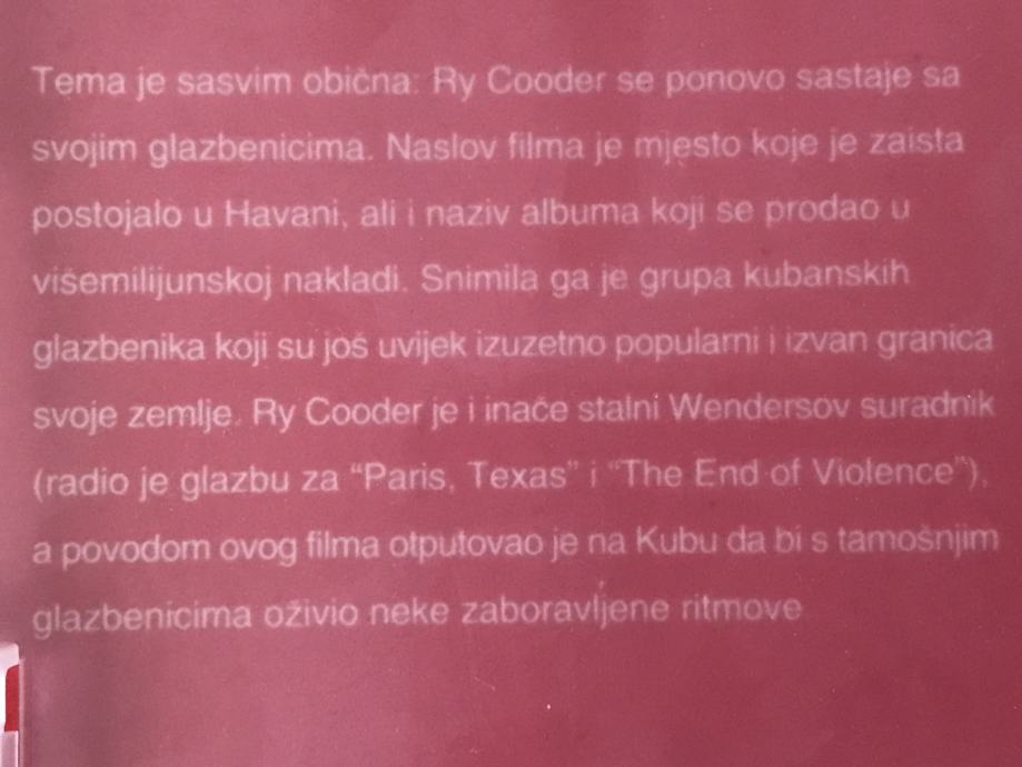 Dokumentarni film Wima Wendersa o glazbi s Kube. Film je postao veliki hit te zaradio nominaciju za Oskara za najbolji dokumentarac. Nakon izlaska film, glazbenici koji su se u njemu pojavili postali su svjetski poznati.