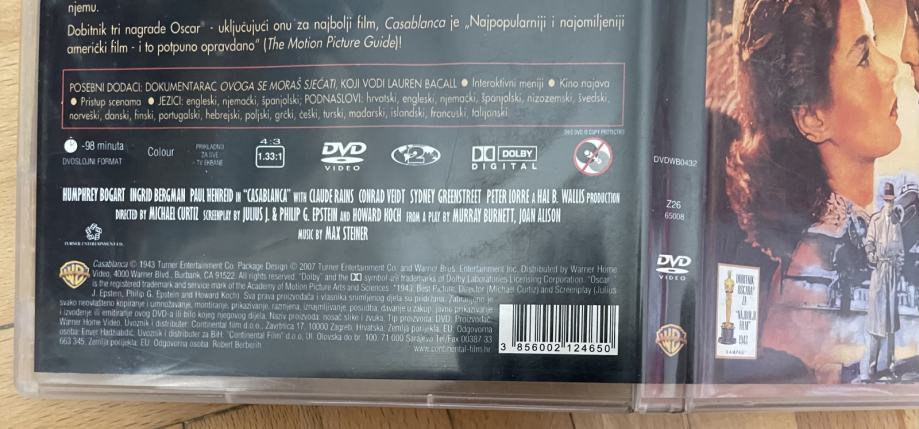DVD iz 2007. Casablanca +dodaci (1943.) Humphrey Bogart Ingrid Bergman
