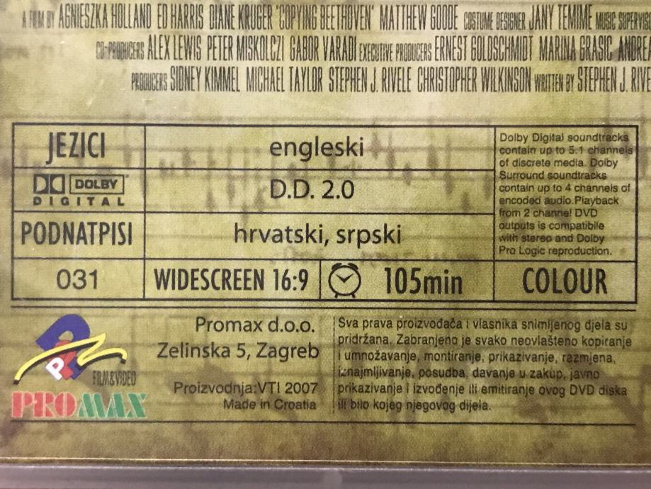 DVD Beethoven = Copying Beethoven / 104 min iz 2006.