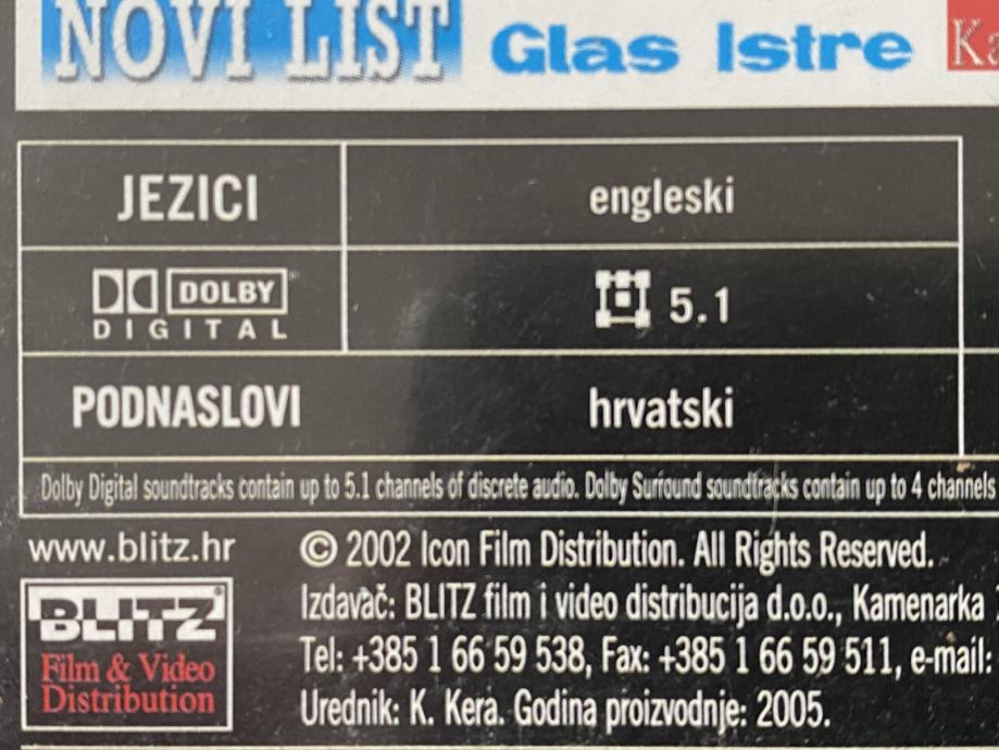 2,23 € - rabljeni DVD sa srpskim titlovima, sinkroniziran na engleskom + plastična kutija s omotom na engleskom jeziku