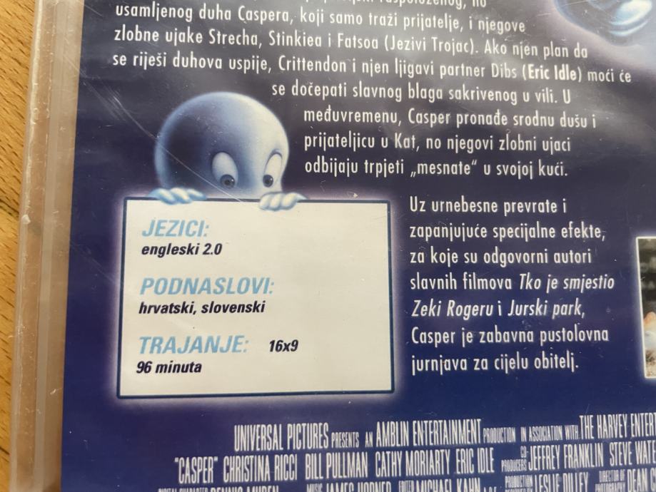 DVD Casper (1995.) 100 min. igrani film komedija obiteljski fantastika