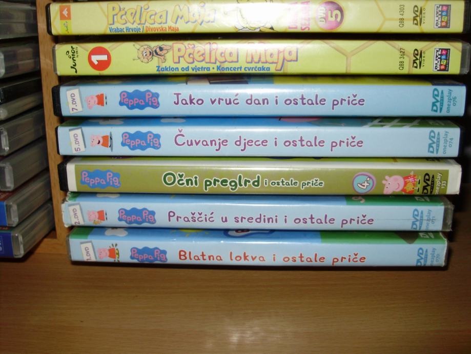 Crtići: Pepa Pig, Pčelica Maja, Auti-Roary, Pikove avanture,Marko i Goga, Winx, Barbie, Tom i Jerry, Snjeguljica, Heidi i drugo.