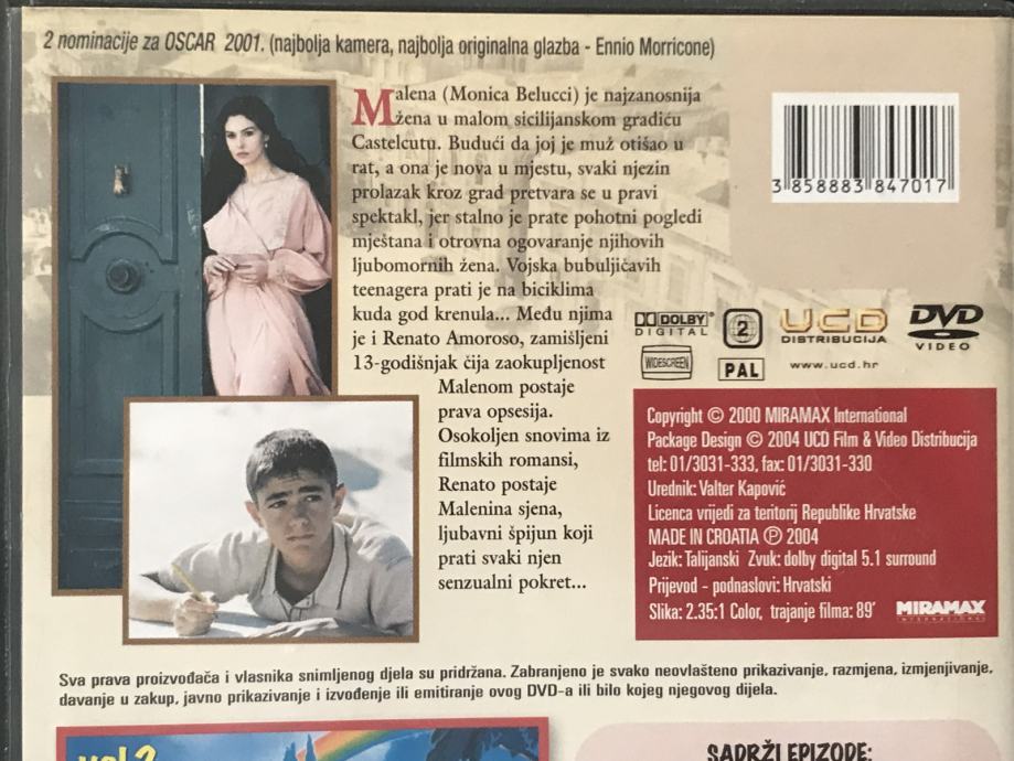 DVD s 2 filma: Malena (2000.) +animirani: Čarobnjak iz Oza vol. 2