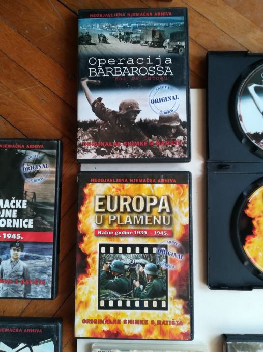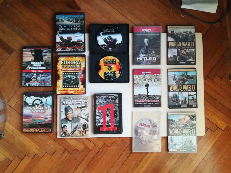 DVD filmovi na original DVD discovima. 2 svjetski rat, ww2, dokumentarni filmovi. Svi su dobro očuvani, imaju hrvatske titlove. Svaki pojedinačno košta 6 eura. Sutjeska i Europa u plamenu ( dvostruki dvd) svaki pojedinačno koštaju 10. Sve zajedno košta 50eura. Na sms nemogu odgovoriti, najbolje bi bilo da me nazovete 099 687 5657 ili pošaljete poruku preko Njuškala.