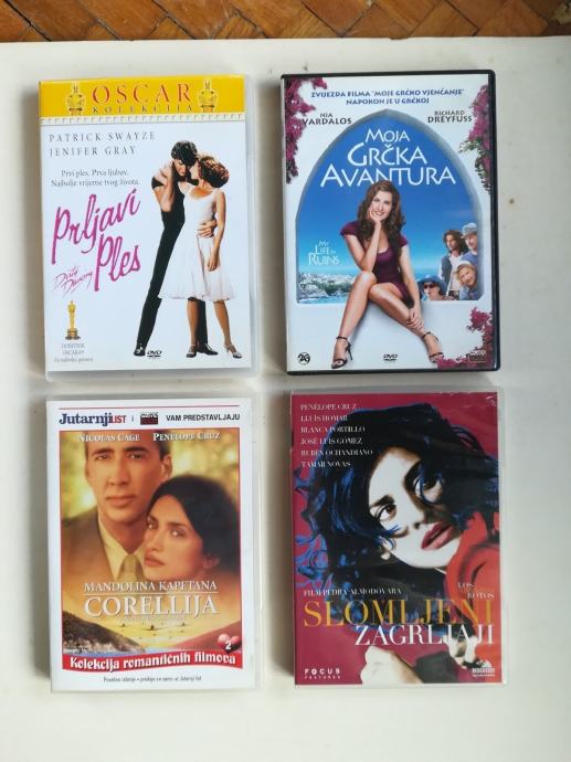 DVD filmovi na original DVD discovima, imaju hrvatske titlove. Svi su super očuvani. Ljubavne priče. Sve zajedno košta 20eura, pojedinačno cijena na upit. Cijena je fiksna. Na sms nemogu odgovoriti, najbolje bi bilo da me nazovete 099 687 5657 ili pošaljete poruku preko Njuškala.