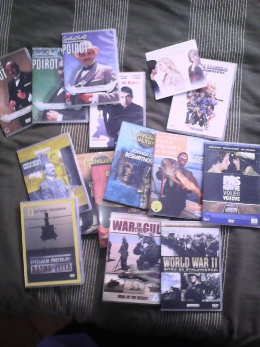 Prodajem komplet DVD filmova i dokumentaraca (ukupno 33 komada), set (80 eura) ili pojedinačno (3 eura/kom), sinkronizirano na hrvatski jezik, koji uključuje: