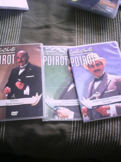 -epizode Herculea Poirota (3 DVD-a, 2 epizode/kom): Avantura Egipatske Grobnice/Tiha Voda, Žuti Iris/Nestali Testament, Mrtvačevo Ogledalo/Krađa Nakita u Hotelu Grand Metropolitan