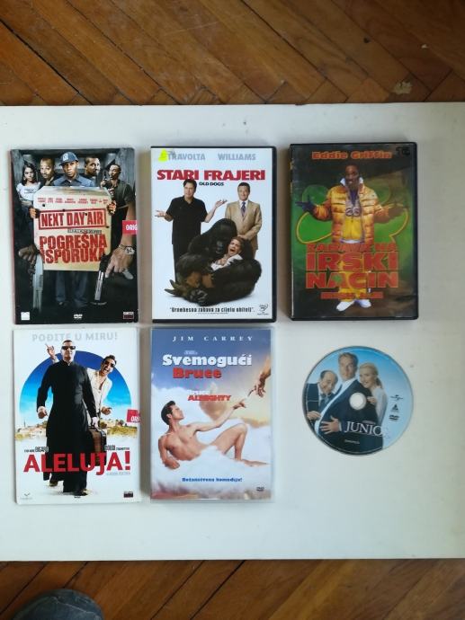 Dvd filmovi na original discovima, svi su komedija. Pojedinačno svaki košta 5 eura, sve zajedno košta 20eura. Cijena je fiksna. Na sms nemogu odgovoriti, najbolje bi bilo da me nazovete.