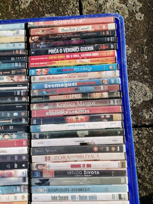 Prodajem razne dvd filmove, 64 komada, ispravne. Navedena cijena je za sve a moze i pijedinacno.Cijena za 1 kom je 1.50Eur.Ne saljem postom.