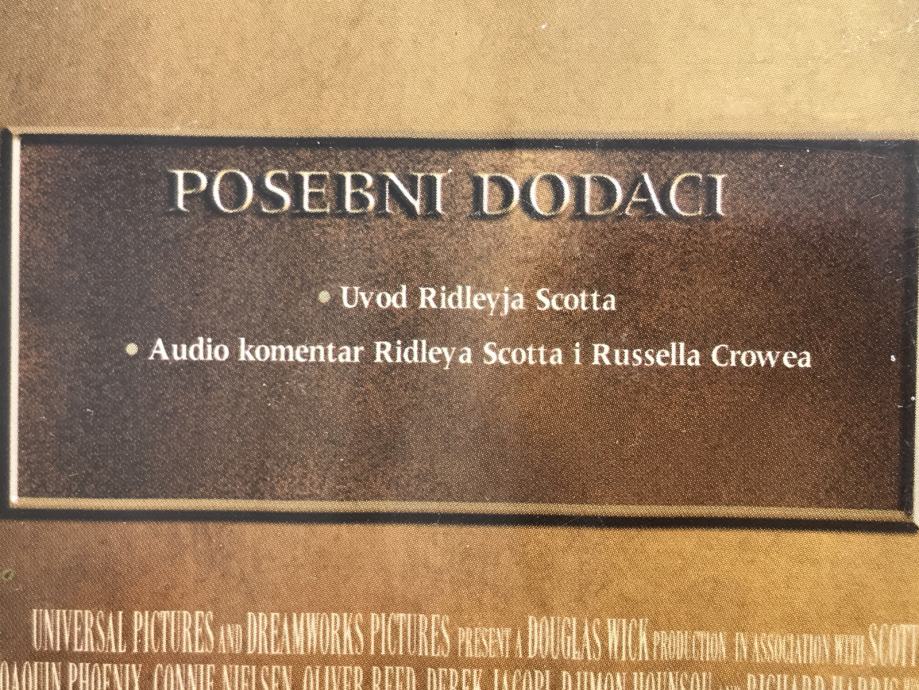 Russell Crowe DVD Gladijator = Gladiator +dodatnih 17 min(2000.)+bonus