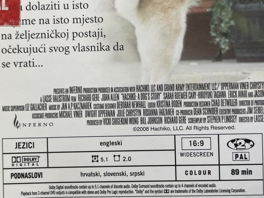 Richard Gere DVD Hachiko Priča o psu (2008.) A dog story