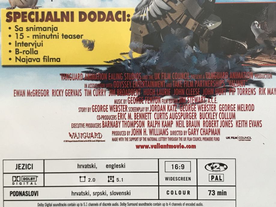 Vanguard Animation 2x DVD-a Hrabri Pero = VALIANT (2005)+spec.dodaci
