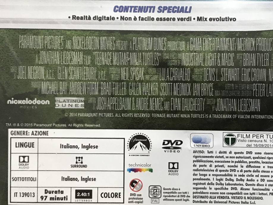 DVD.en igrani film Teenage Mutant Ninja Turtles +bonus TMNT noHRtitlov