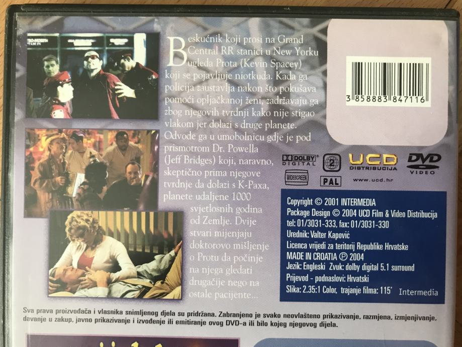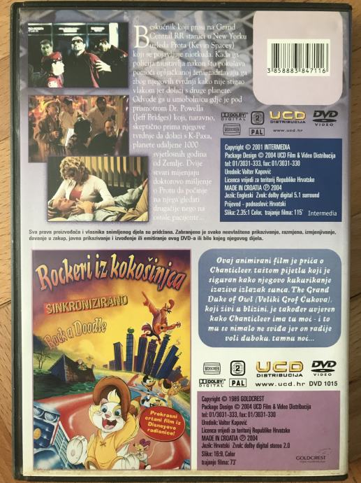 DVD s2filma: K-PAX (120 min iz 2001.)+animirani: Rockeri iz kokošinjca
