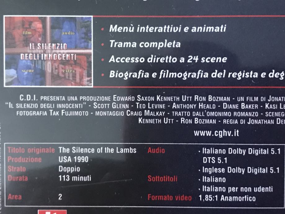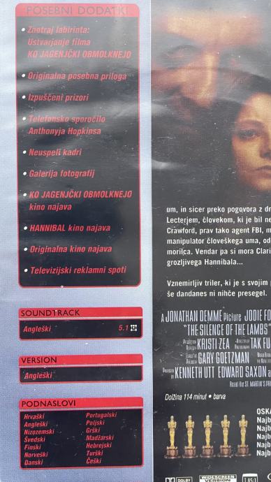 Foster Hopkins DVD Kad jaganjci utihnu =THE SILENCE OF THE LAMBS(1991)