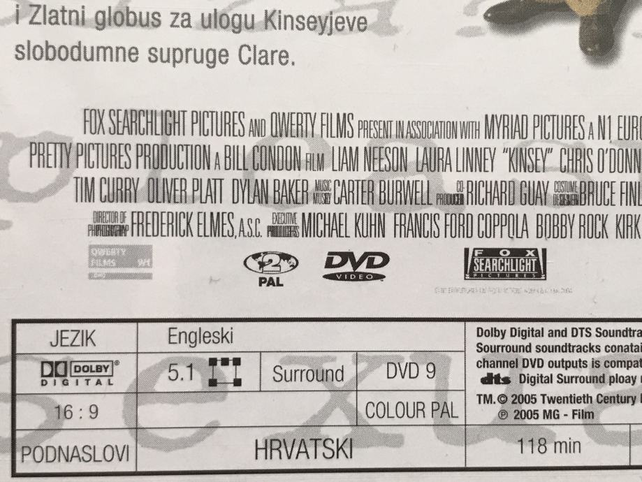 DVD Kinsey +BonusDodaci(2004)Liam Neeson |priča o seksološkom velikanu