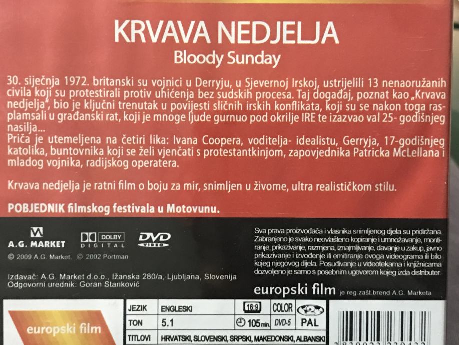 DVD Krvava nedjelja = BLOODY SUNDAY / 105 min iz 2001.