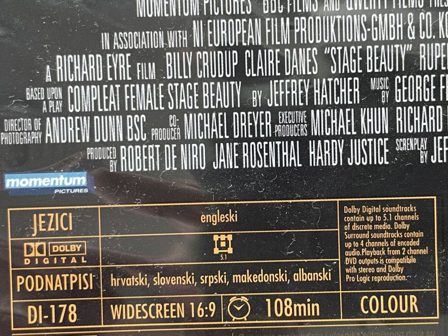 DVD Ljepota pozornice = Stage Beauty / producent: Robert De Niro