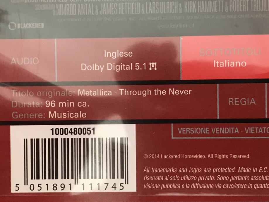 DVD / Metallica - Throught The Never (2013.) / 96 min / 30 kn /Pula
