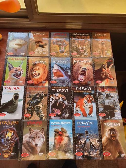 20 dvd -novo u celofanu...sve divlje zivotinje -grabezljivci izbliza...sikronizirano na hrvatski.Tvrde korice..uz dvd..brosura u boji -25 stranica..