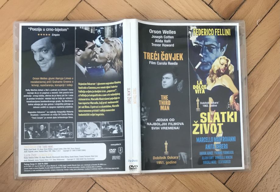 2x DVD-a iz 2008. s 2 filma: Treći čovjek + Slatki život | +dodaci