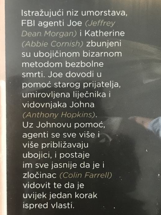 Kako bi uhvatili zloglasnog serijskog ubojicu, FBI zatraži pomoć vidovnjaka koji bi im pomogao u lovu na tog iznimno opasnoga čovjeka. Ovo je triler koji će vas u napetom iščekivanju držati do samoga kraja!