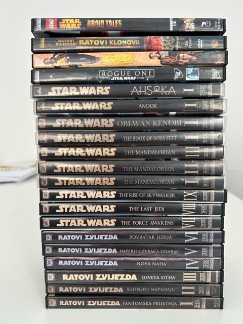 Kućna kolekcija star wars (ratovi zvijezda) na dvd-u (nisu original) filmovi i serije,prodajem jer mi više ne trebaju,prebacio na hard disc.Jedan kom 4 €,samo film 2 €,na usb 1 € kom(ako je više od 10 kom).