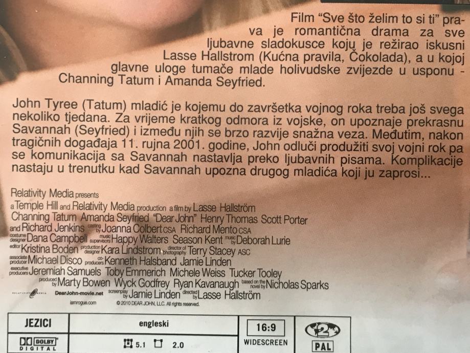 DVD Sve što želim to si ti = Dear John (2010.) Amanda Seyfried+C.Tatum