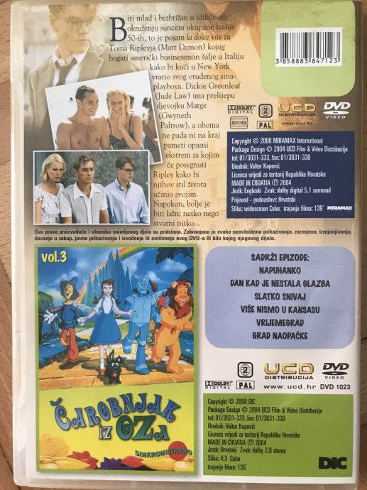 DVD s2filma Talentirani gospodin Ripley (1999.)+6epiz.Čarobnjak iz Oza