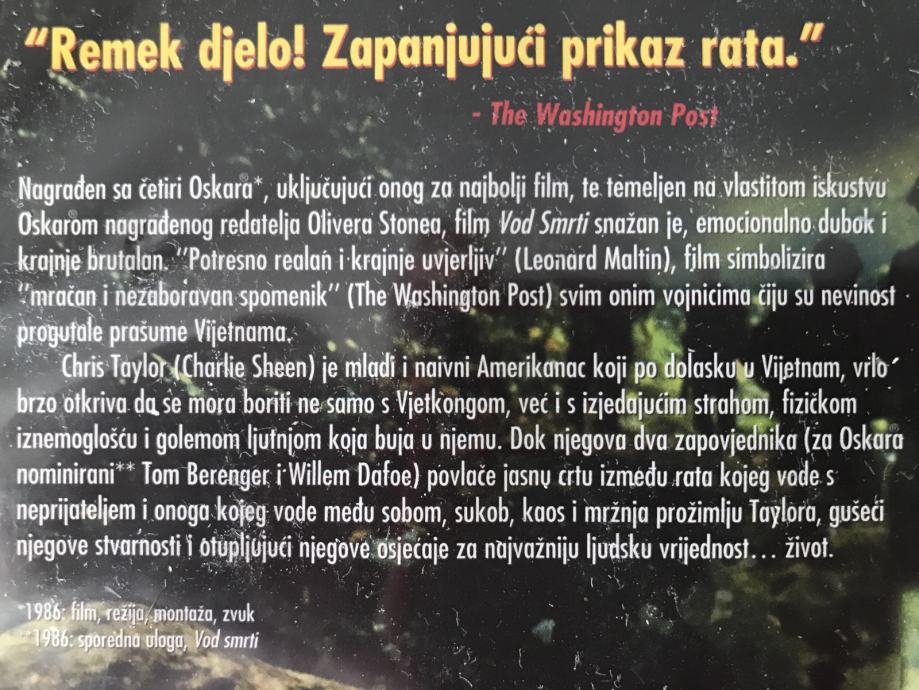 Oliver Stone Charlie Sheen DVD-a Vod smrti = Platoon (1986.)
