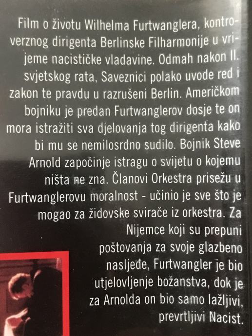 Film o životu Wilhema Furtwanglera, kontroverznog berlinskog dirigenta koji se istaknuo za vrijeme nacističkog režima zbog čega je kasnije proganjan.