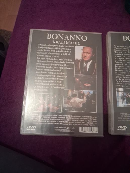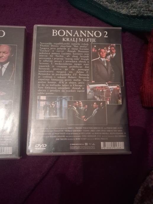 Prodajem korištene DVD filmove "BONANNO: Kralj mafije" 1 i 2 dio s glumcima Bruce Ramsay i Edward James Olmos. Filmovi su u dobrom stanju, komplet uključuje oba nastavka kultne mafijaške sage.
