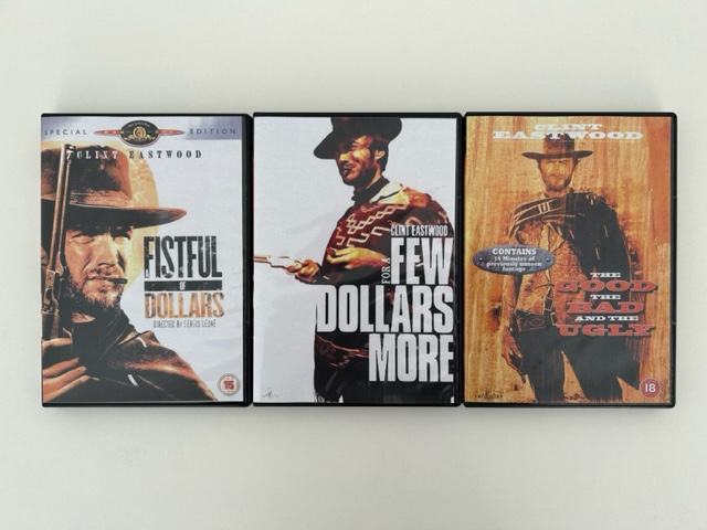 Špageti western od Eastwooda,nisu original 3 kom 12 €,prebacio na hdd pa mi više ne trebaju