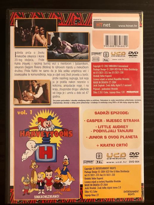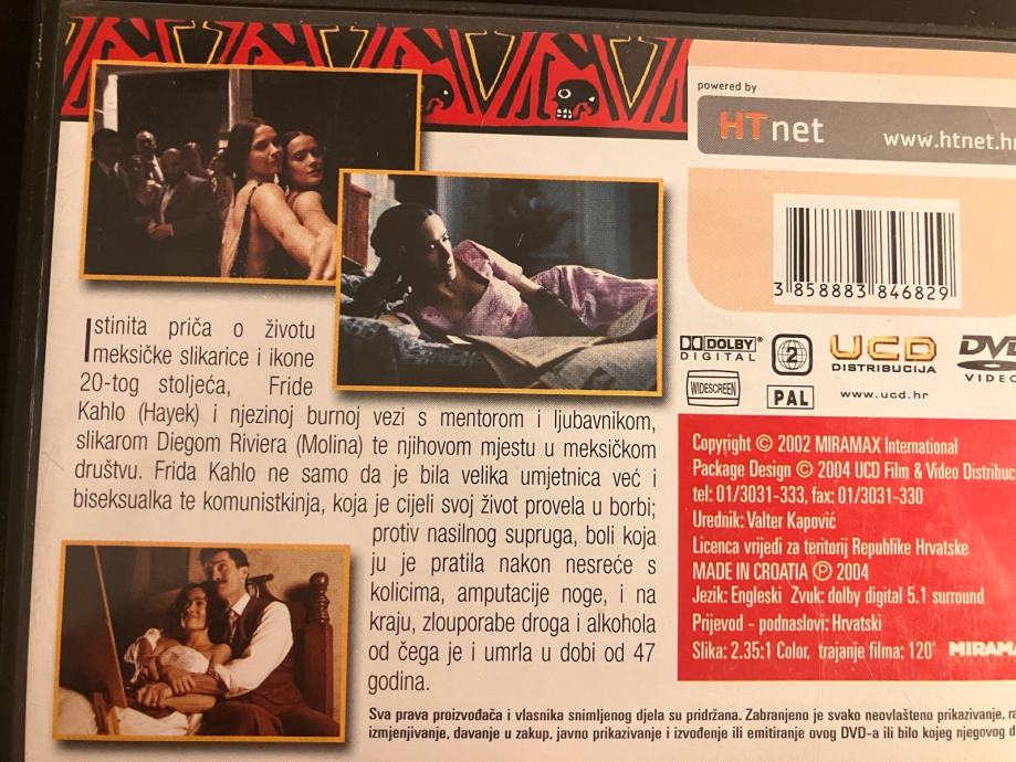 Frida - DVD original. 5 fotografija je u oglasu. Cijena je 5 EUR, a Troškovi slanja su dodatna 3 EUR Tiskom ili 5 EUR Poštom za unaprijed uplatu na račun ili 6 EUR za plaćanje pouzećem. Slanje s Box Now je 2 EUR. Pakiram tako da je sigurno u transportu. Odgovaram na pozive, poruke putem Njuškala, SMS, Vib