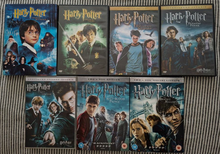 Kolekcija Harry Potter filmova. Svi su dvostruki i osim Half-blood prince i Deadly hollows 1 imaju hrvatske titlove.