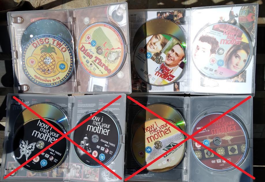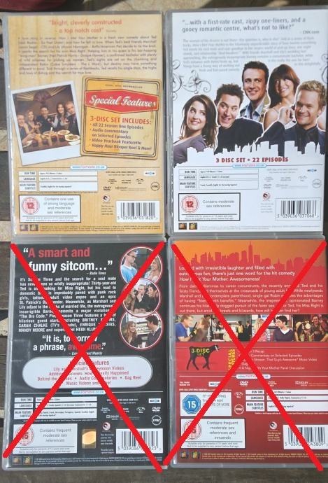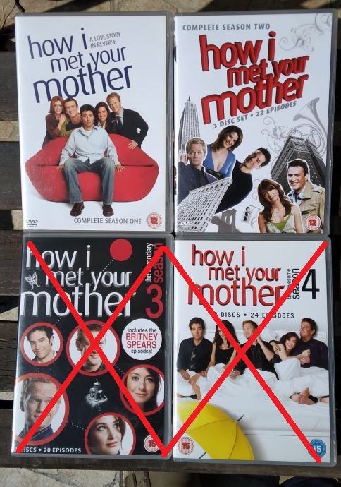 Ili Kako sam upoznao vašu majku. Prve dvije sezone (svaka ima po 3 diska). Prva sezona u 4:3 formatu. Eng. titlovi
